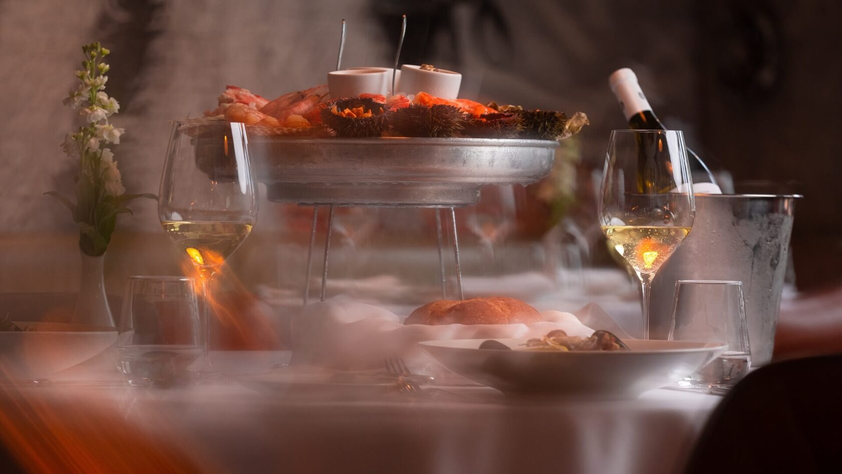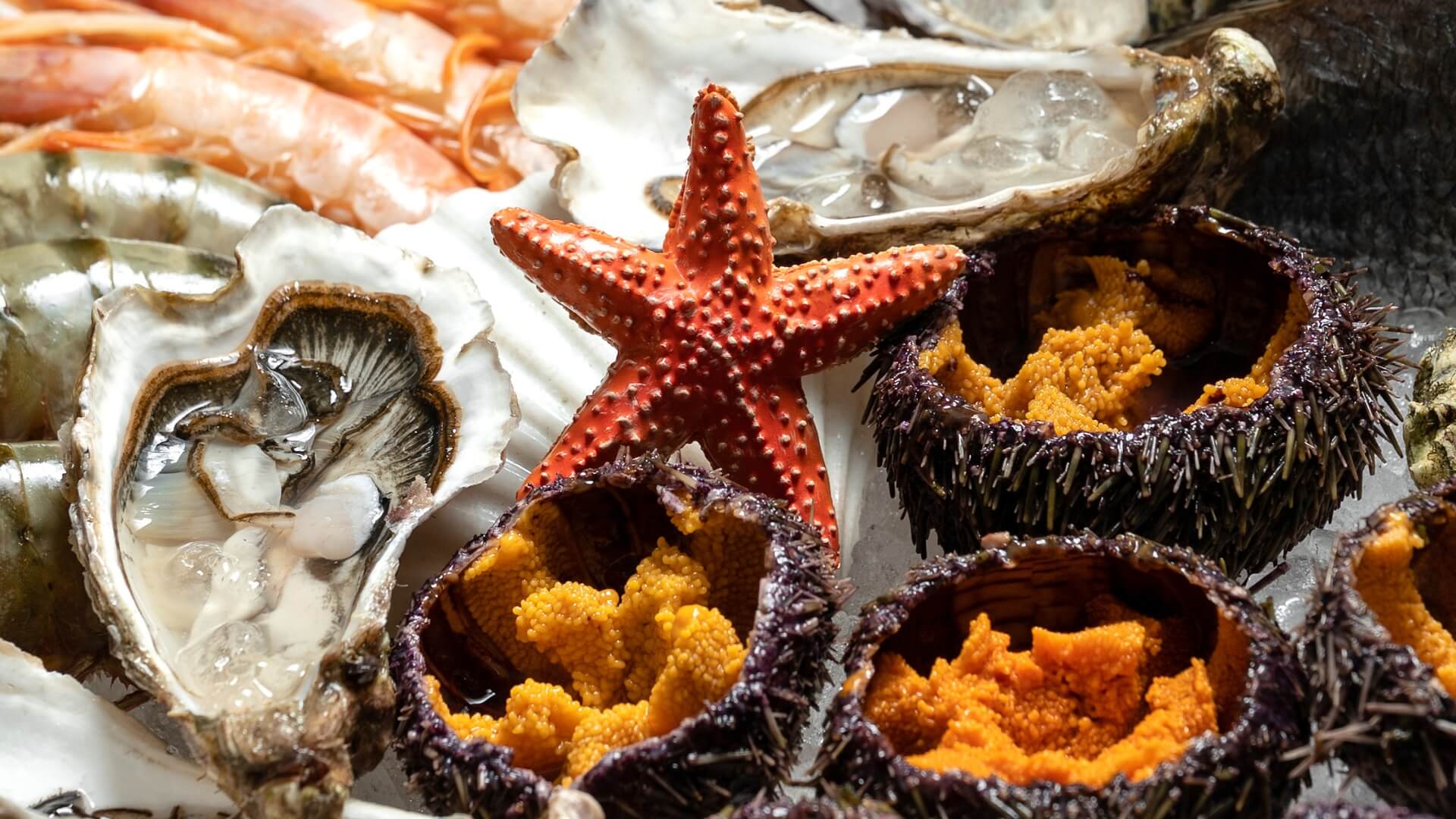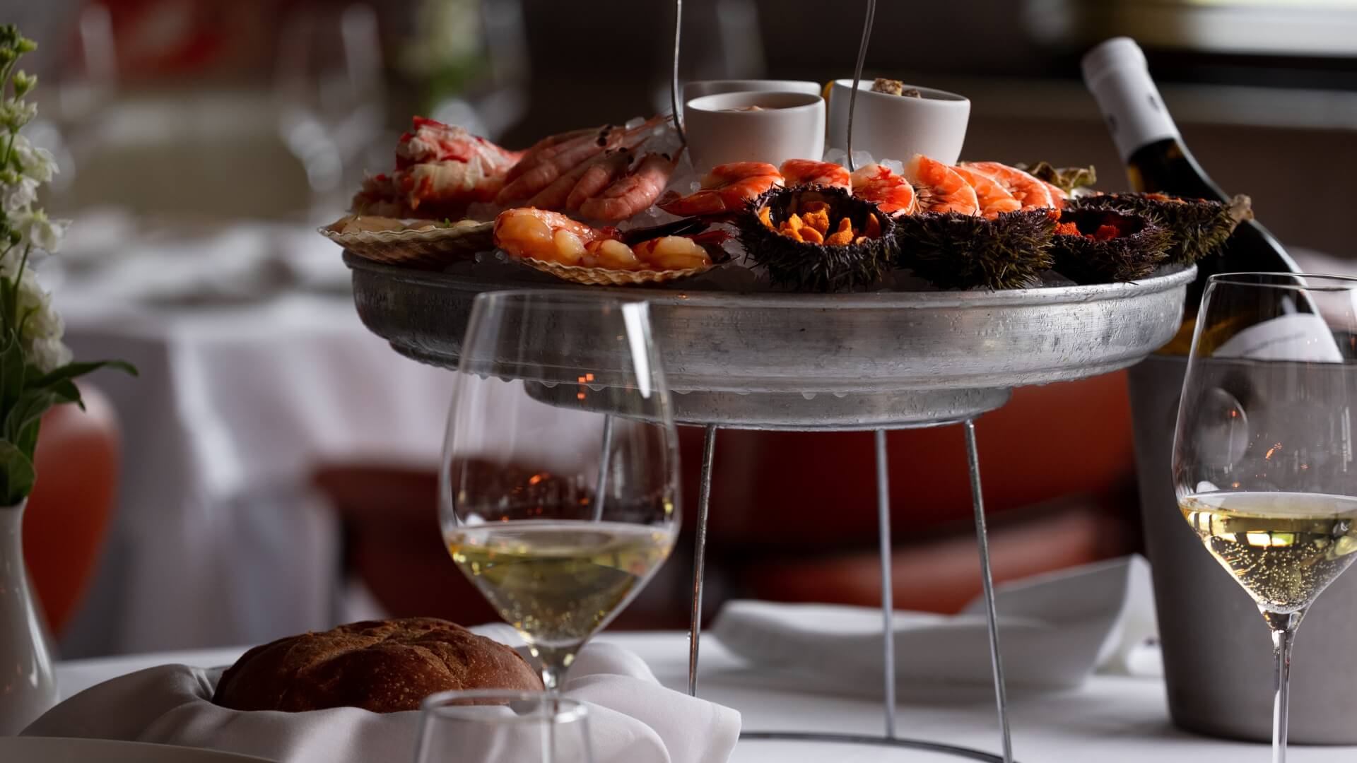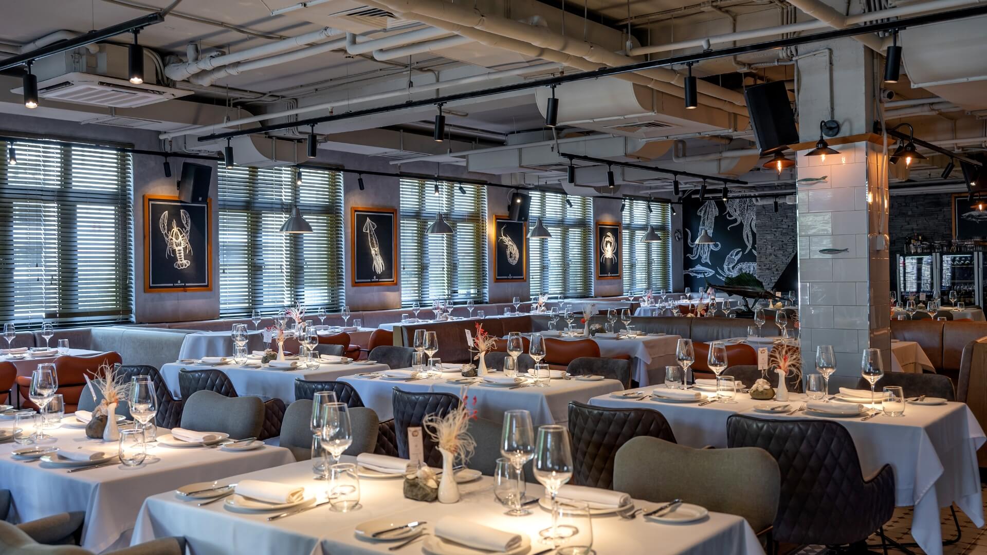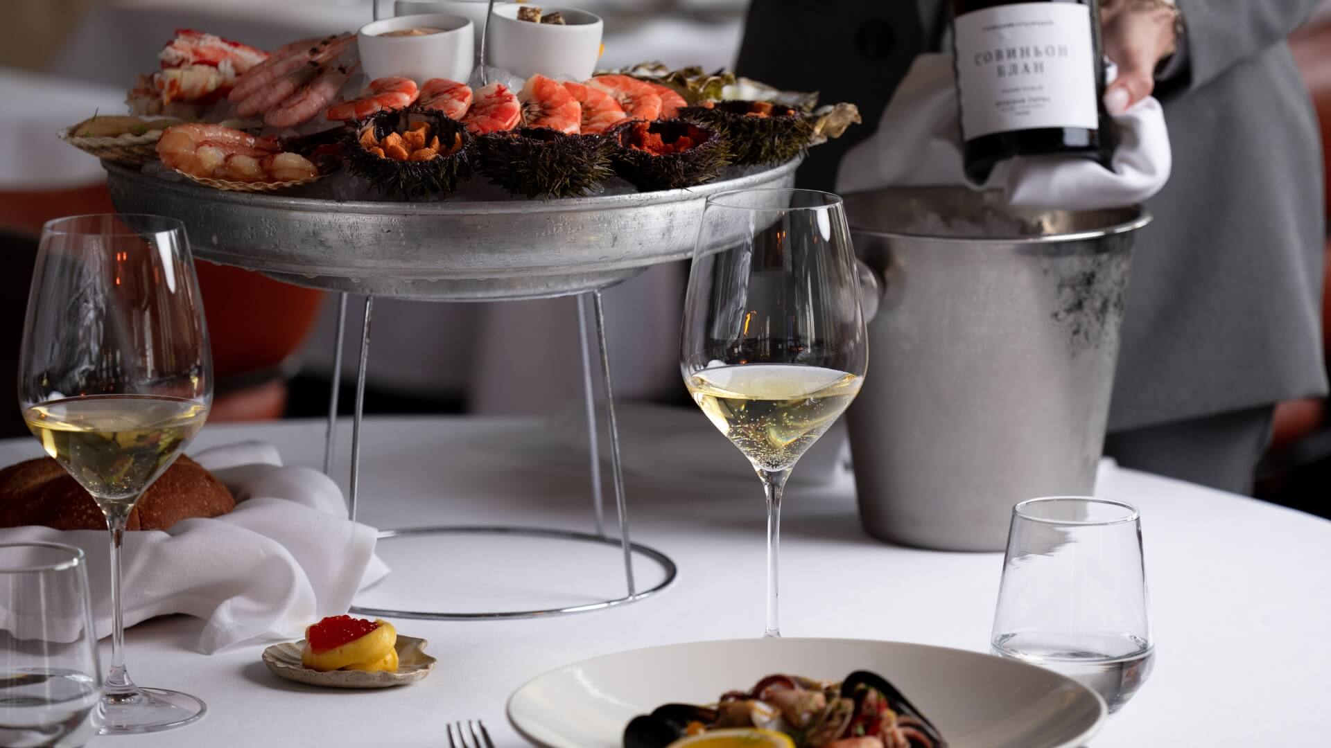 Сердце ресторана — raw bar с ледником и аквариумом, где гости могут выбрать морепродукты на свой вкус: креветки, краб, устрицы, разнообразные тартары и карпаччо.