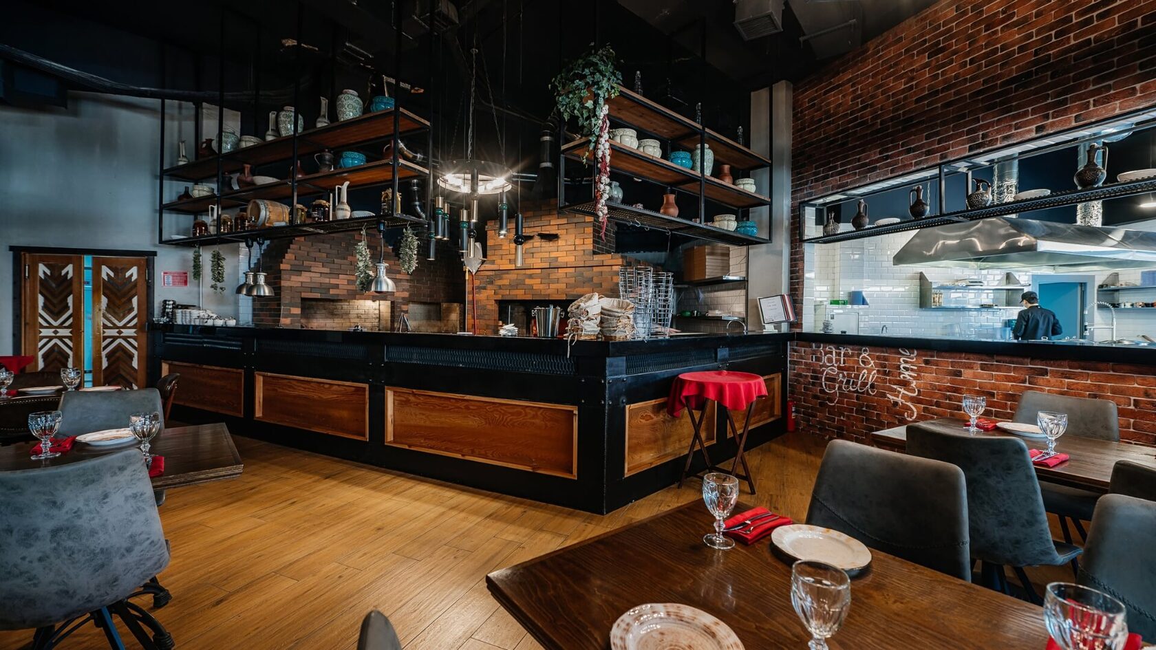Тип: грузинское бистро премиум-класса / хинкальная / открытая кухня / дровяная печь / минималистичный скандинавский дизайн
