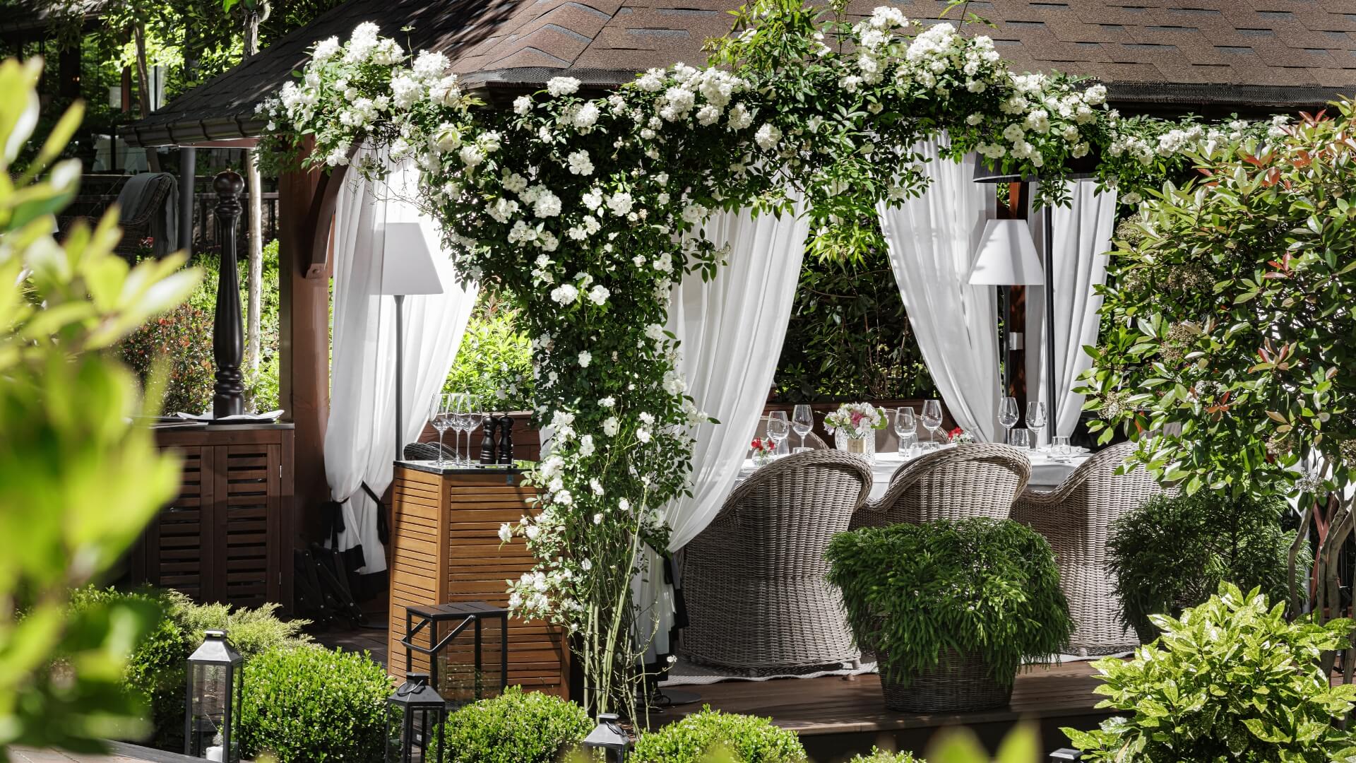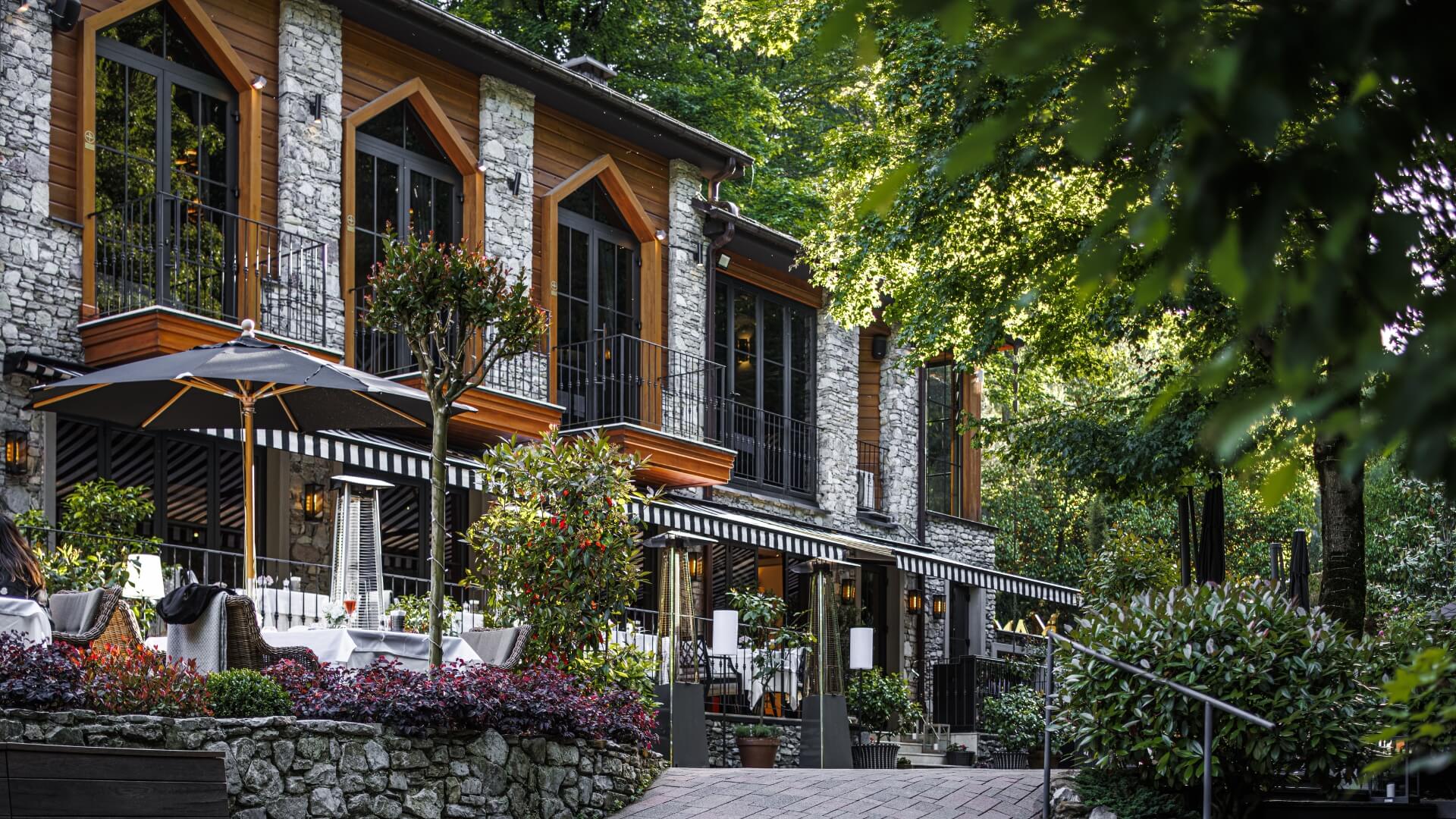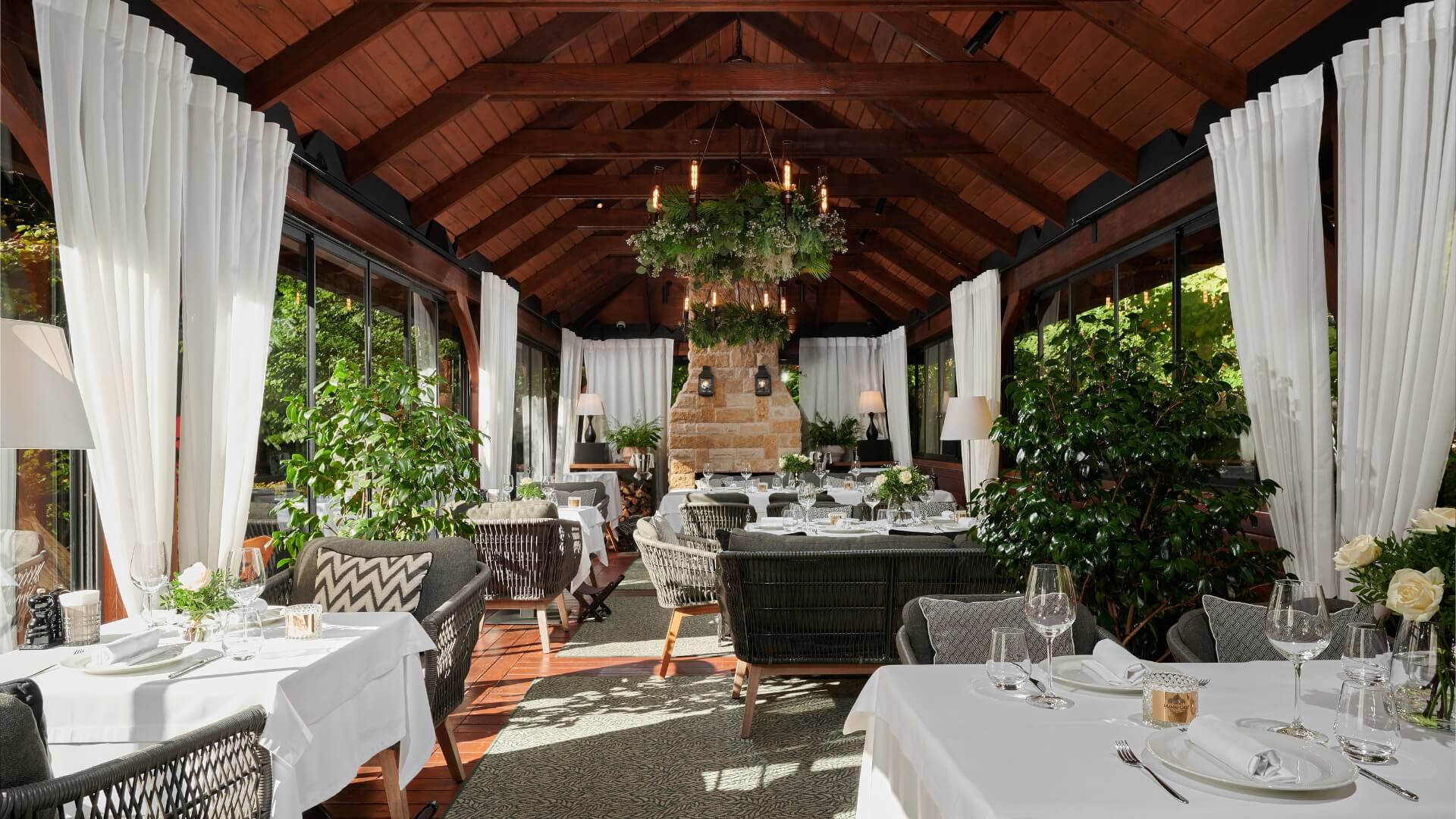 - Территория включает ресторан, винный бар, открытые террасы и беседки