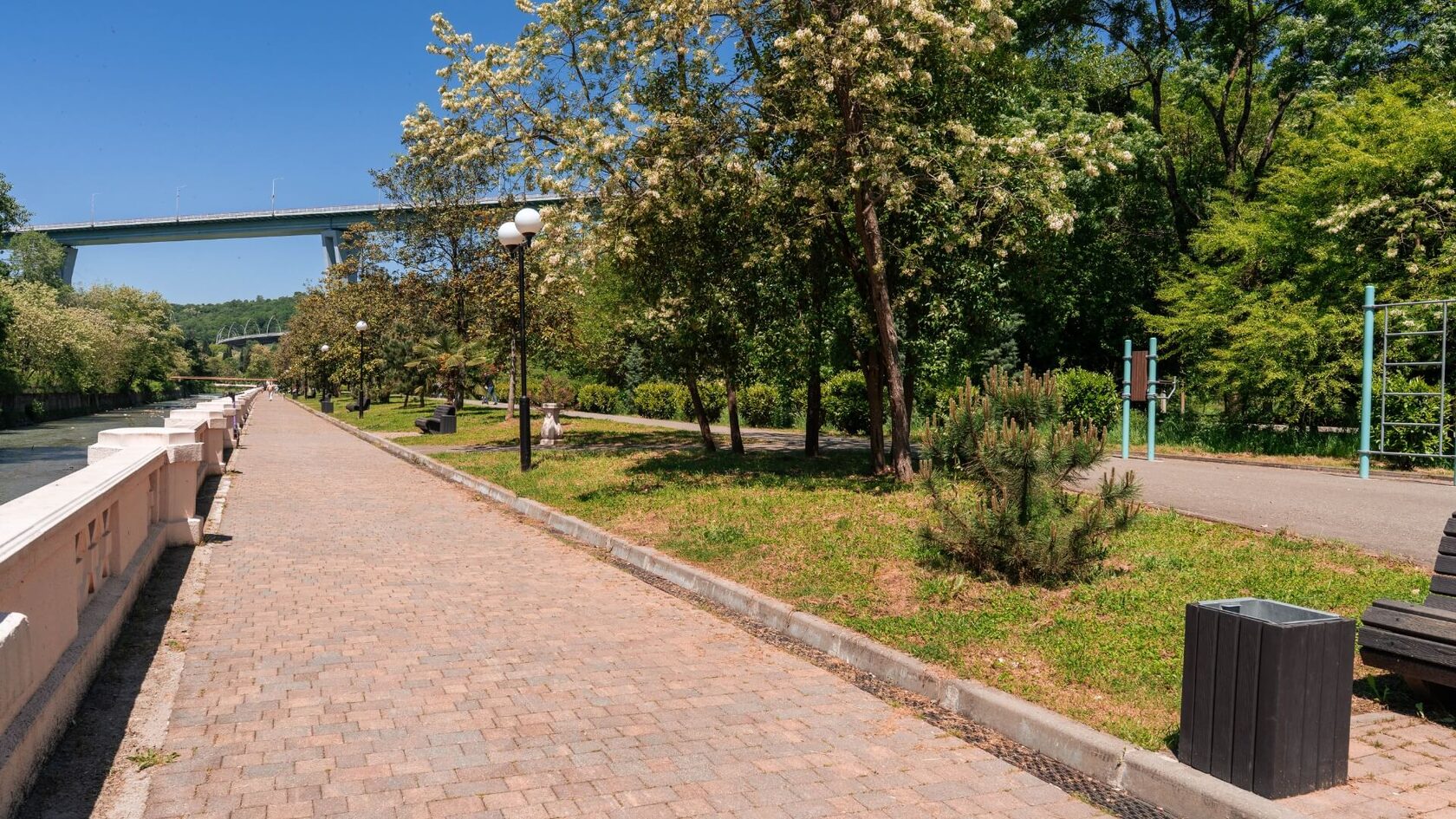Мацестинская набережная — современная спортивно-рекреационная зона, ставшая образцом благоустройства в рамках нацпроекта «Жильё и городская среда». Здесь сочетаются активный отдых, семейные прогулки и тренировки на свежем воздухе вдоль живописной реки Мацеста.