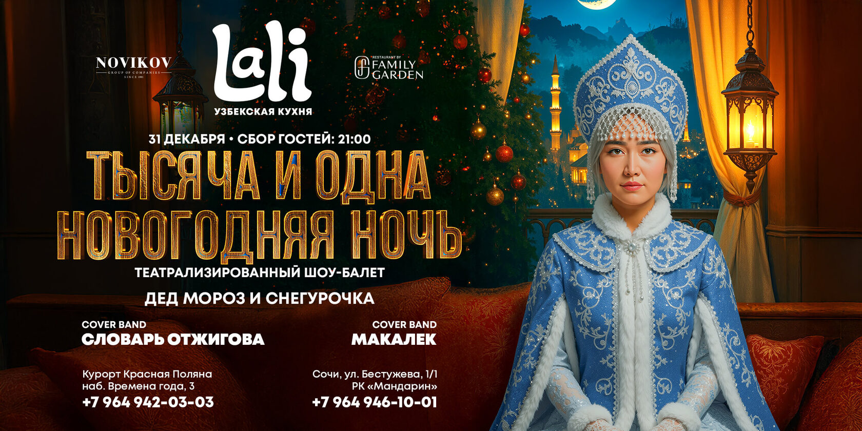 - Кавер-концерты: в Адлере — бэнд Makalek, на Красной Поляне — "Словарь Отжигова"